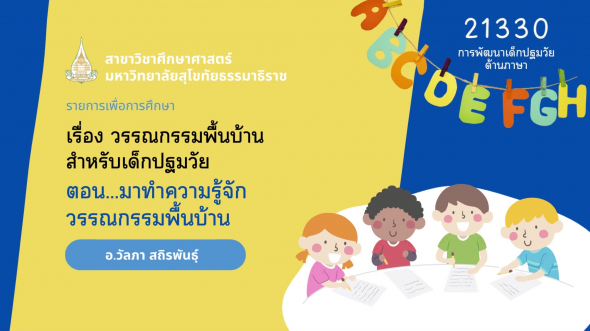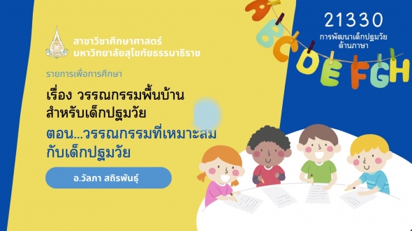 21330 รายการที่ 8 ตอนที่ 1 ความรู้เบื้องต้นเกี่ยวกับวรรณกรรมสำหรับเด็กปฐมวั...