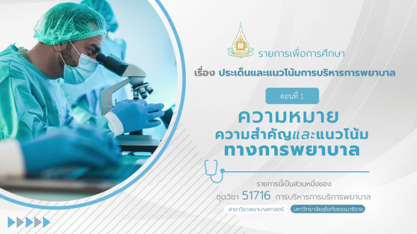 51716 รายการที่ 7 ตอนที่ 1 ความหมาย ความสำคัญและแนวโน้มทางการพยาบาล...
