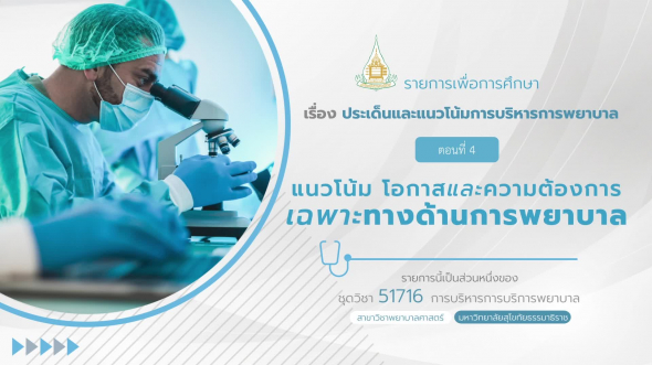 51716 รายการที่ 7 ตอนที่ 4 แนวโน้ม โอกาสและความต้องการเฉพาะทางด้านการพยาบาล...