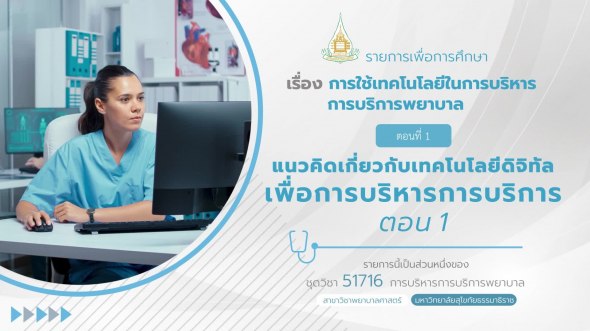51716 รายการที่ 9 ตอนที่ 3 เทคโนโลยีดิจิทัลในการบริหารการบริการพยาบาล ตอน 1...