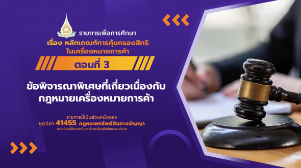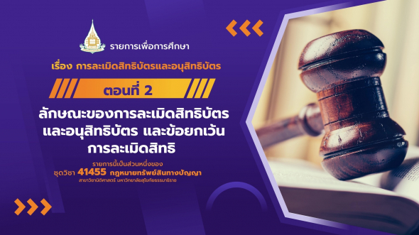 41455 รายการที่ 1 ตอนที่ 3 เจตนารมณ์ของการคุ้มครองทรัพย์สินทางปัญญา หลักกา...