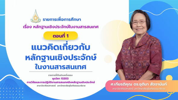 13203 รายการที่ 9 ตอนที่ 1 แนวคิดเกี่ยวกับหลักฐานเชิงประจักษ์ในงานสารสนเทศ...